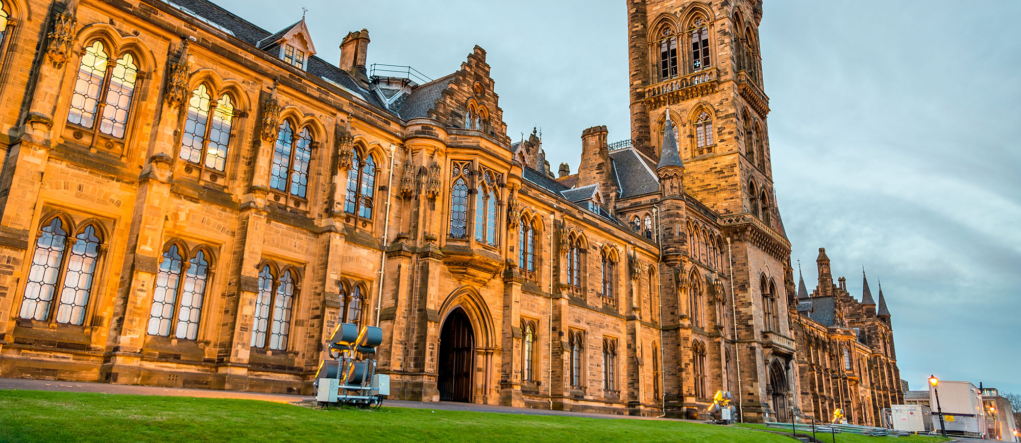 Driving instructions: upon leaving the airport, take the A77 towards Glasgow. The A77 merges onto the M77 and you should drive along this road for around 13 miles. Next, take the lane leading to M8 Glasgow/City Centre. You should exit the M8 following signs for the A82/A804 for around one and a half miles, through Charing Cross junction and along St Georges Road. You will see a road bridge ahead and should bear left here for Great Western Road/ A82. Drive along Great Western Road for around one mile until you come across a four-way traffic light junction with the Oran Mor (converted church building) on your left. At these lights, take a right. Continue on Kelvin Way for one mile then turn left onto Kelvin Drive, just after the bridge.